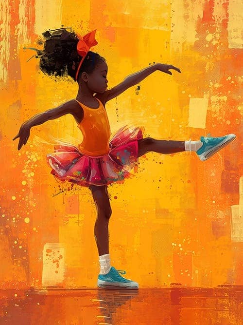 This digital painting is not only a visual delight but also a symbol of empowerment and representation. By featuring a little black girl as the centerpiece, it showcases diversity and inclusivity in the world of ballet, encouraging aspiring ballerinas from all backgrounds to embrace their dreams and reach for the stars.